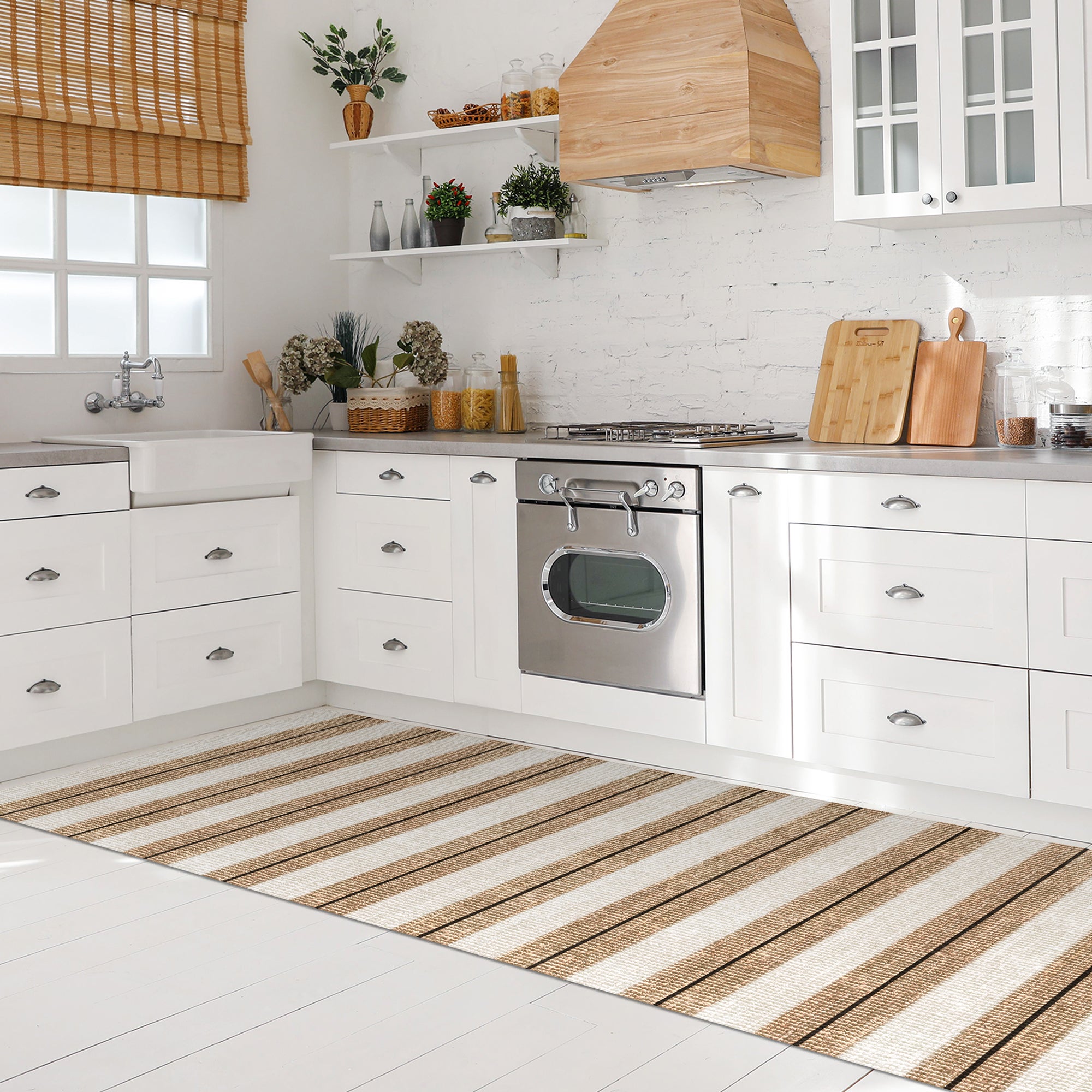 Tapis/ Rayures beiges / 61x152 cm - RUNNER/ Créé et fabriqué en France ...