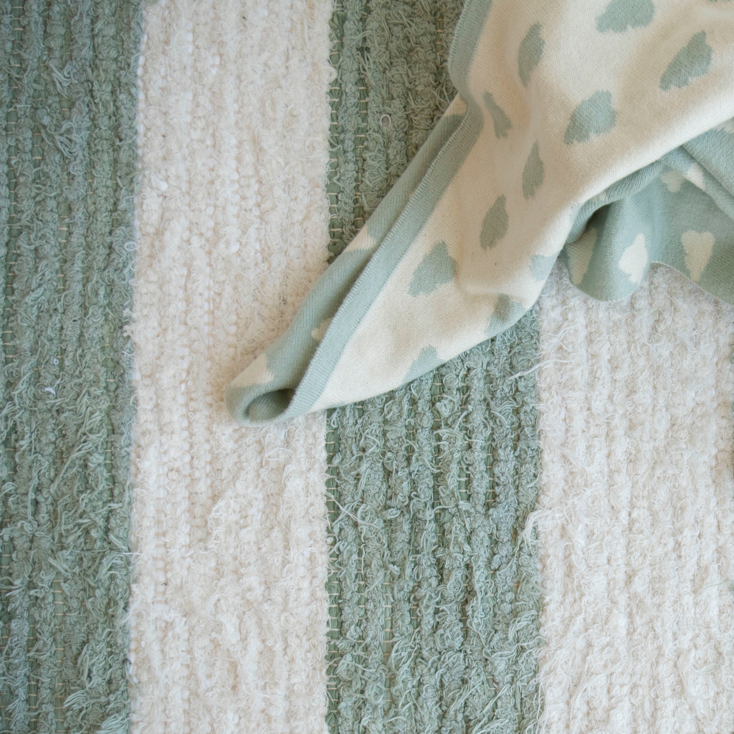 madam stoltz tapis de chambre vert franges rayure jute coton