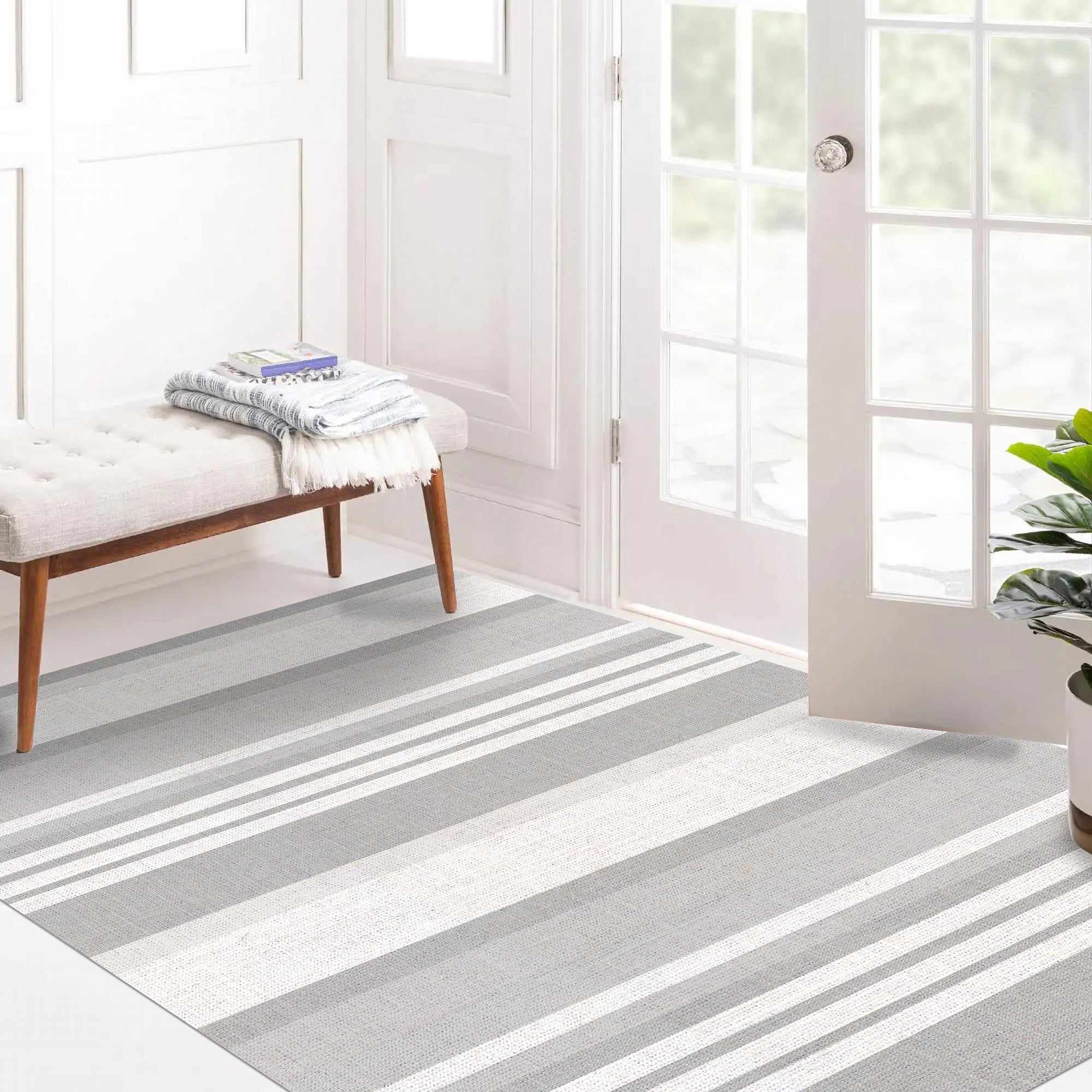 Tapis Jute Rectangulaire avec Rayure en Coton 60x90 cm – Silumen
