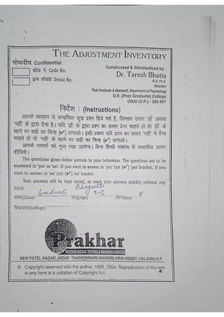 Test - Taresh Bhatia's Adjustment Inventory | PDF