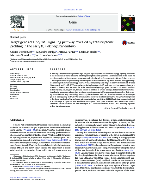 (PDF) Target genes of Dpp/BMP signaling pathway revealed by ...