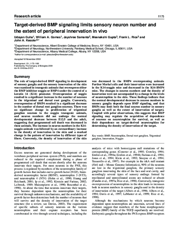 (PDF) Target-derived BMP signaling limits sensory neuron number and the ...