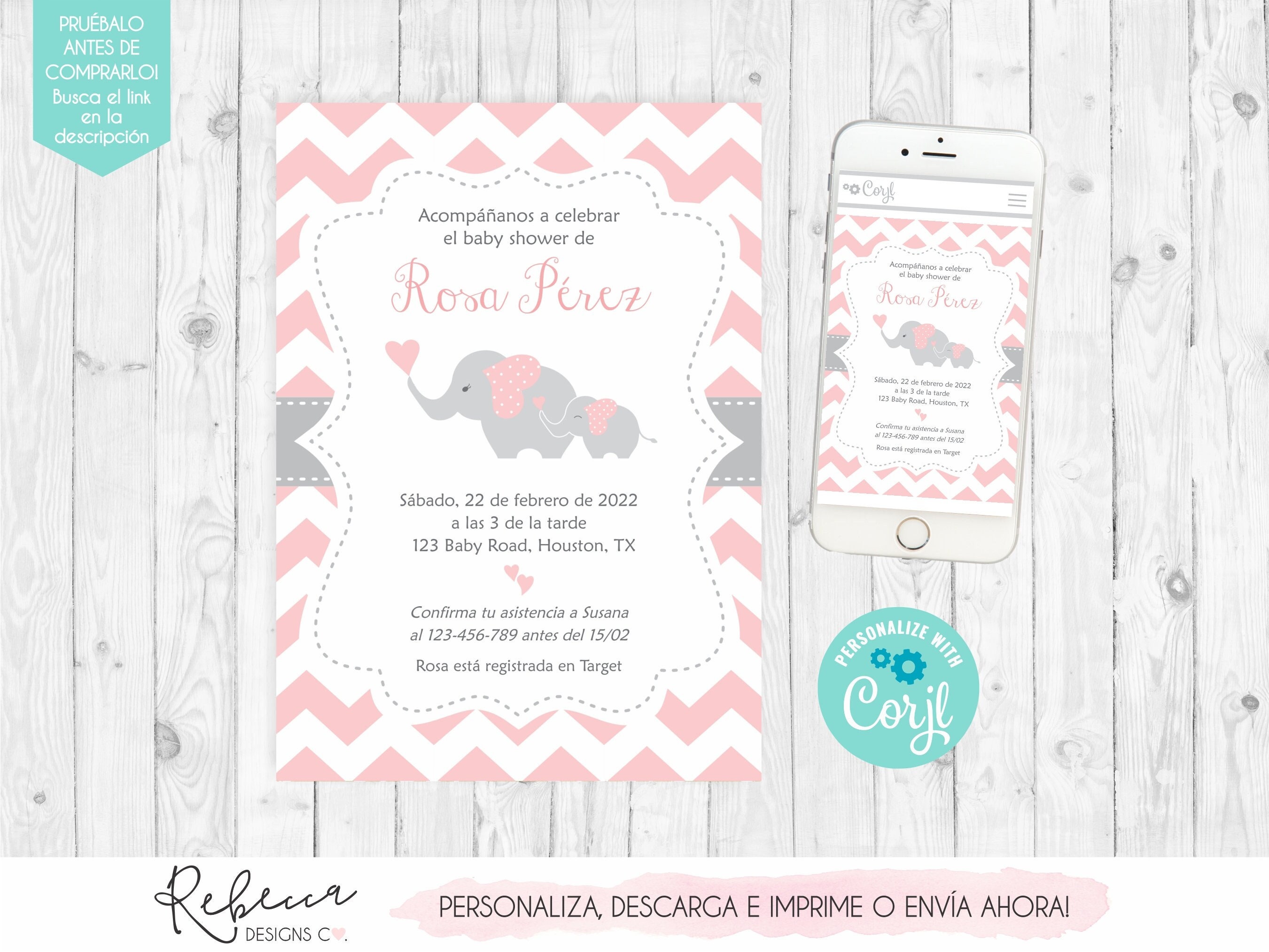 Kate Aspen Elephant Baby Shower Invitation & Thank You Card Bundle ...