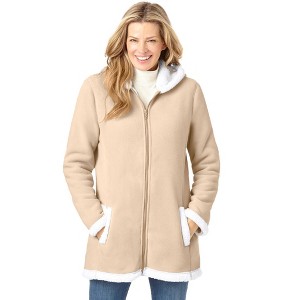 Woman Within Fleece Hooded High Pile Fleece Lined Jacket - 2X, Beige ...