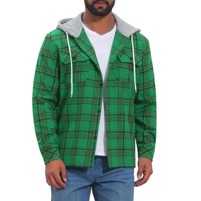 INSPIRE CHIC Men's Plaid Drawstring Hooded Chest Pocket Long Sleeve ...