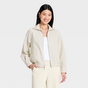 Women's Mock-Neck Full Zip Bomber Jacket - A New Day™ Cream Dot XL : Target