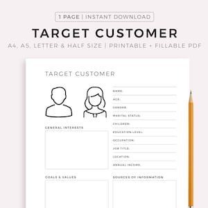 Target Customer Template Printable, Ideal Target Audience, Customer ...