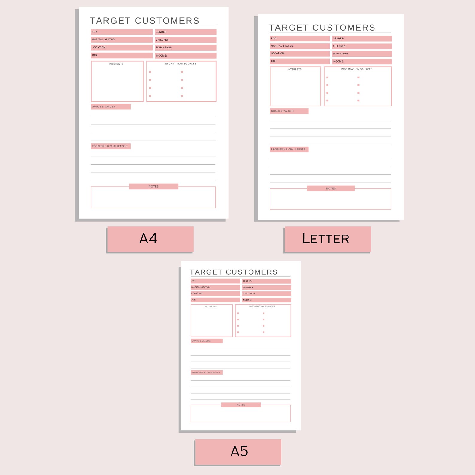 Printable Target Customer Profile, Client Sheet, Customer Tracking ...