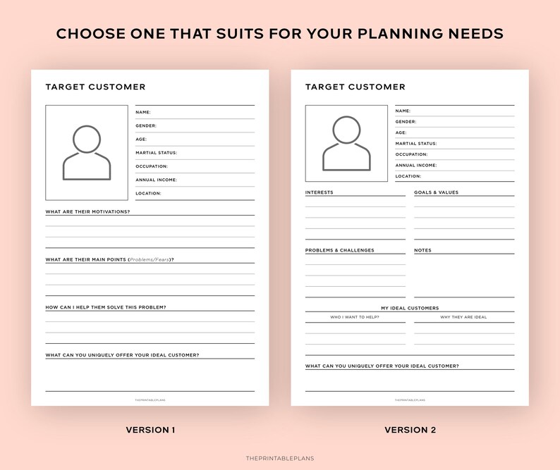 Target Audience Template Printable Target Customer Market Planner Ideal ...