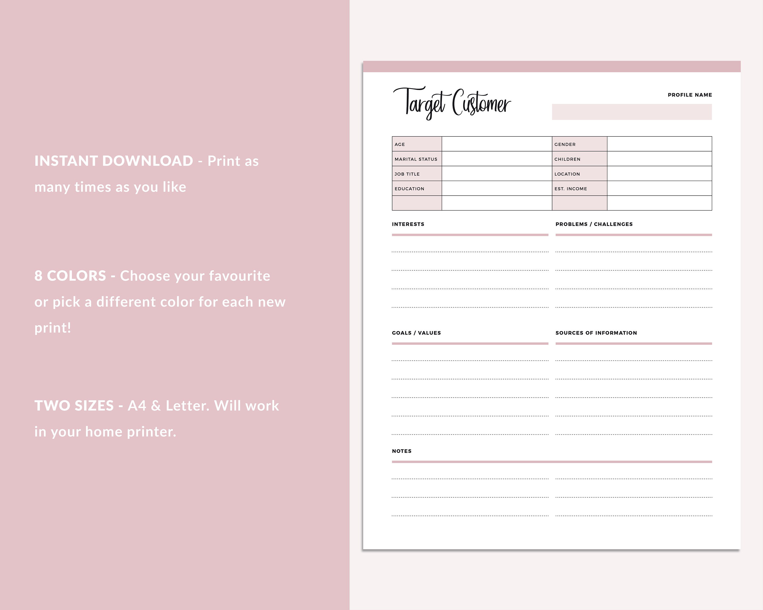 Target Customer Template Printable, Consumer Profile Worksheet, Ideal ...