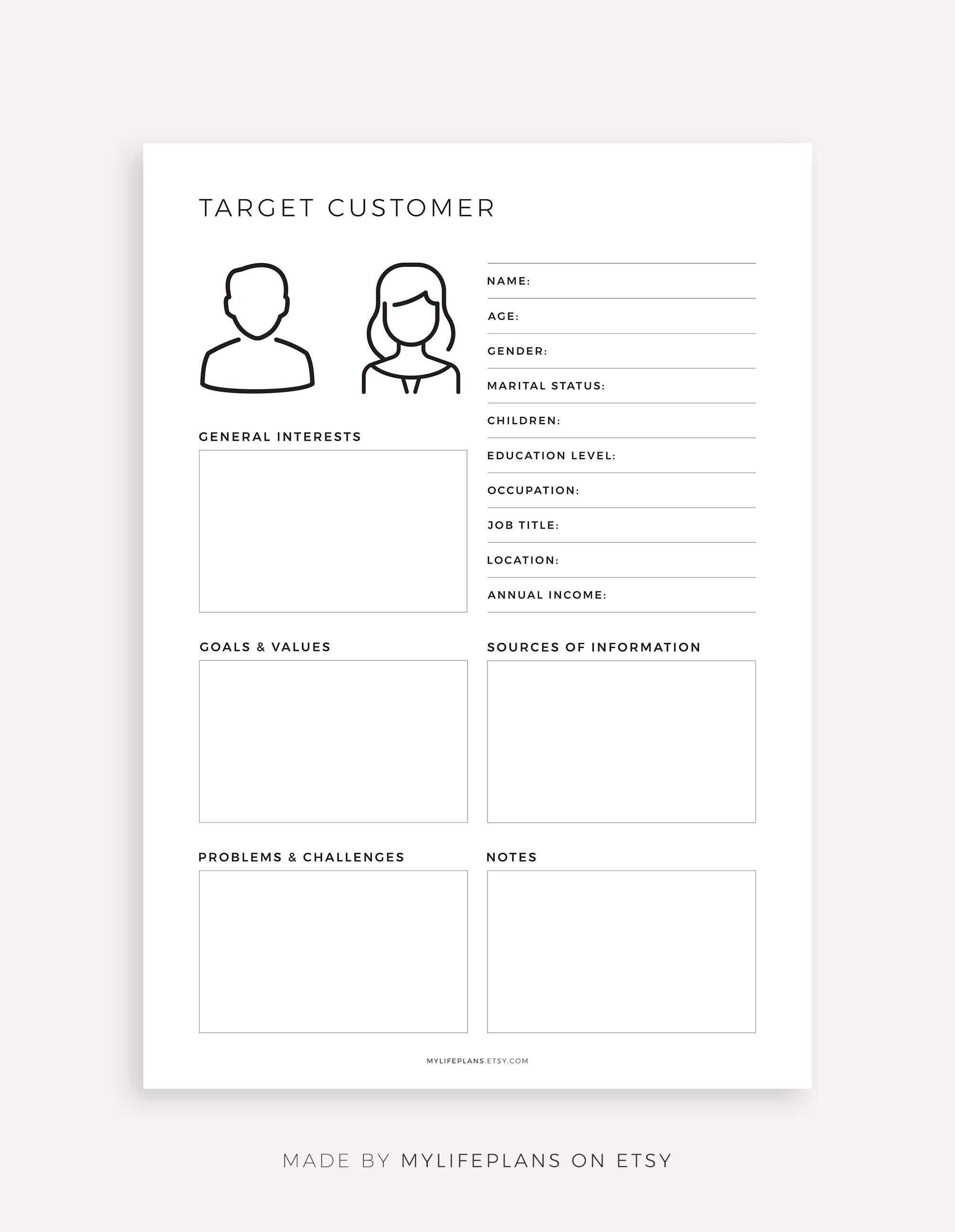Target Customer Template Printable, Ideal Target Audience, Customer ...