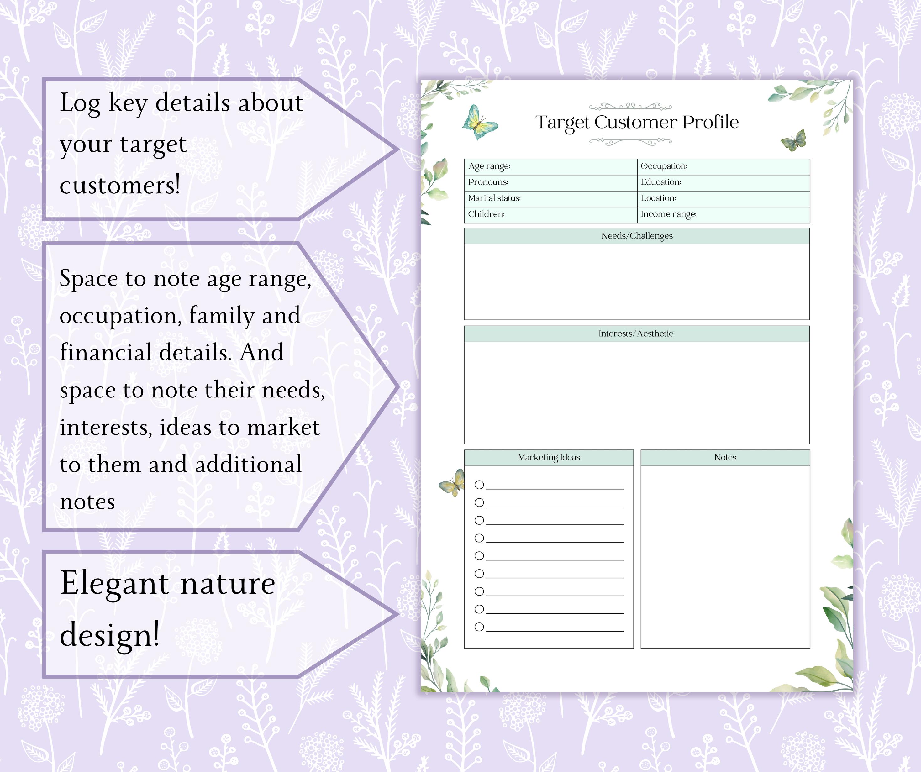 Printable Target Customer Profile Sheet | Target customer, Student plan ...