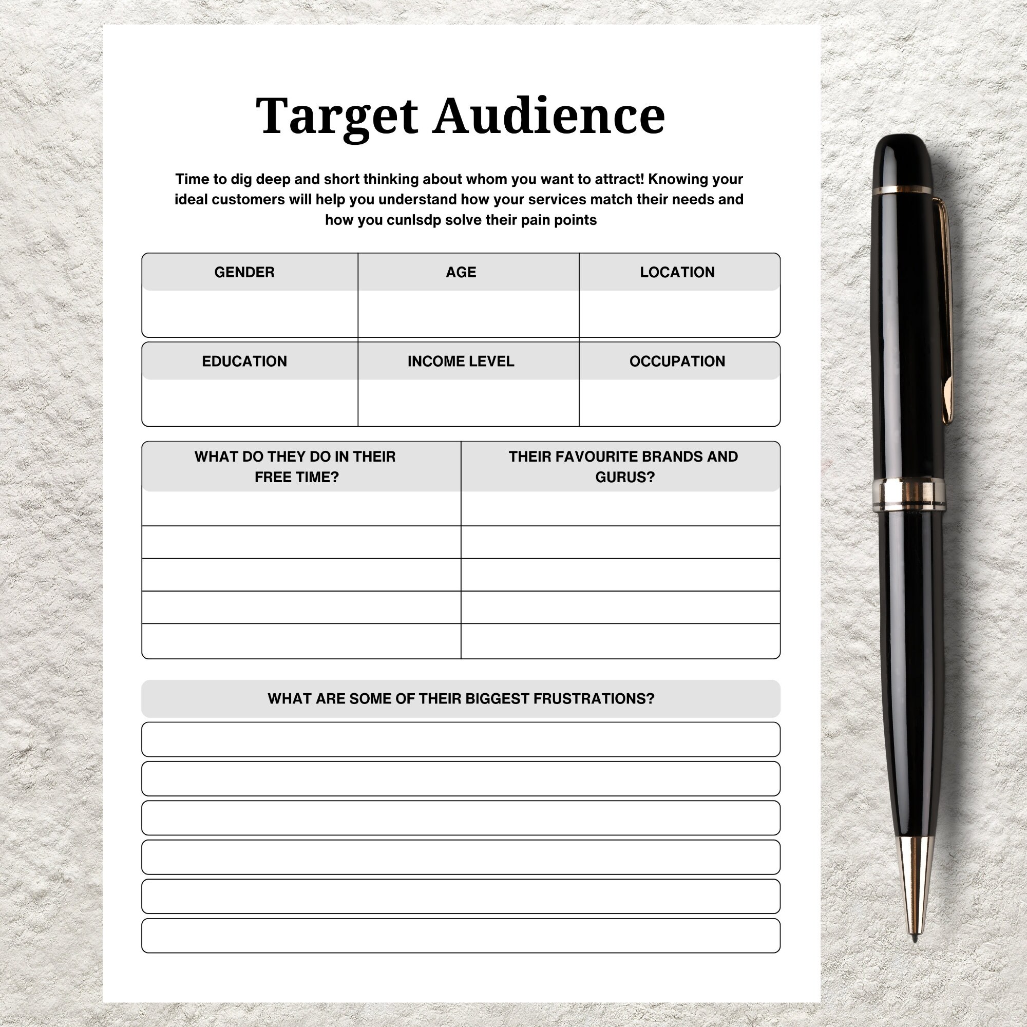 Target Audience Template Printable Target Customer Market Planner Ideal ...