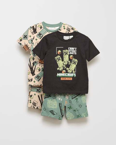 Minecraft Australian Cotton Younger Boys 2 Pack Short Pyjama Set ...