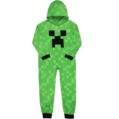 Minecraft Kids Fleece Creeper Hooded Union Suit Zip-up Footless Pajama ...