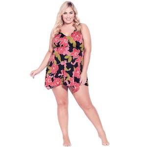 Women's Swim Dress Scoop Neck Adjustable Wide Straps Attached Flowy ...