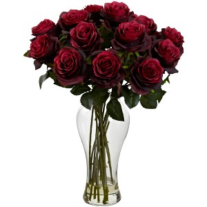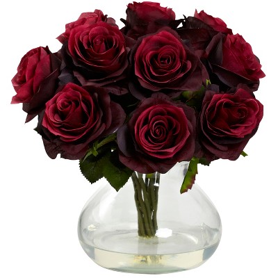 Nearly Natural Blooming Roses with Vase, Burgundy : Target