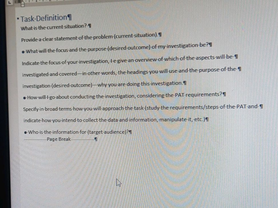 Task Definition Answer the following questions in your task definition: