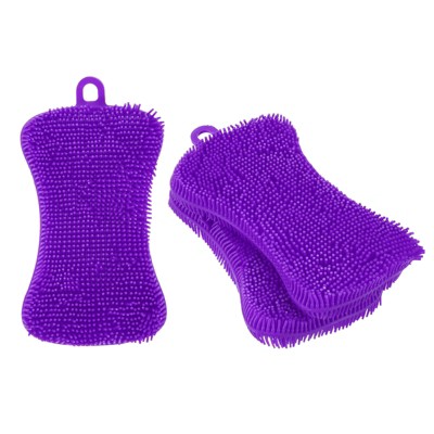 Unique Bargains Silicone Dish Scrubber, Reusable Dishes Sponges ...