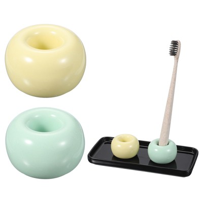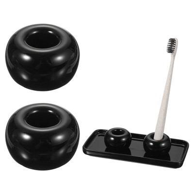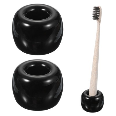 Unique Bargains Mini Ceramics Toothbrush Holder Stands 2 Pcs Black : Target