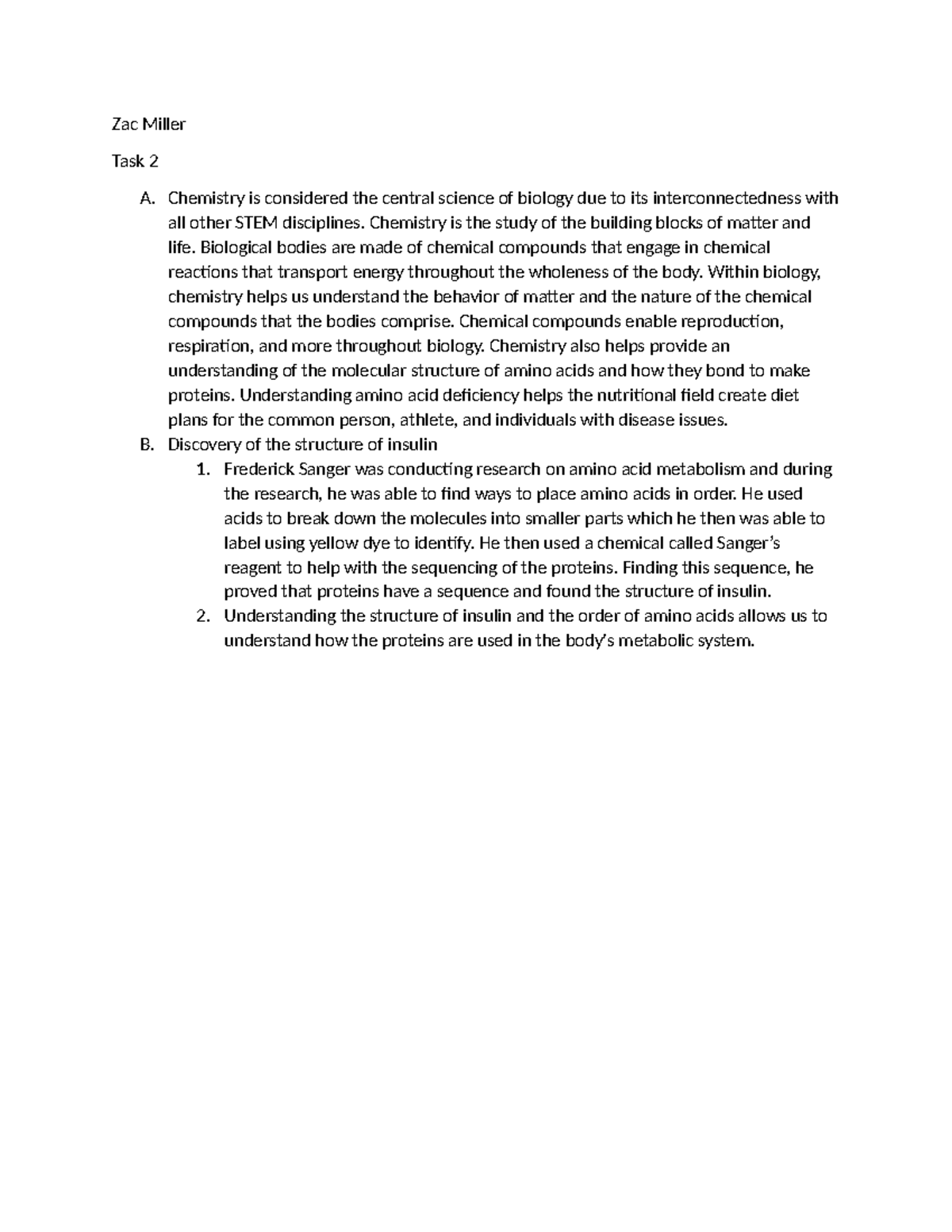 Task 2 - Complete and passed - Zac Miller Task 2 A. Chemistry is ...