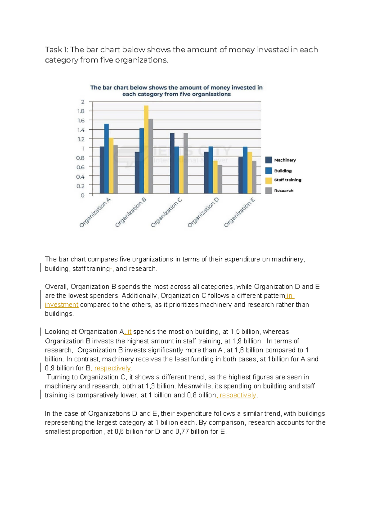 Task 1: Analysis of Investment Expenditure by Five Organizations - Studocu