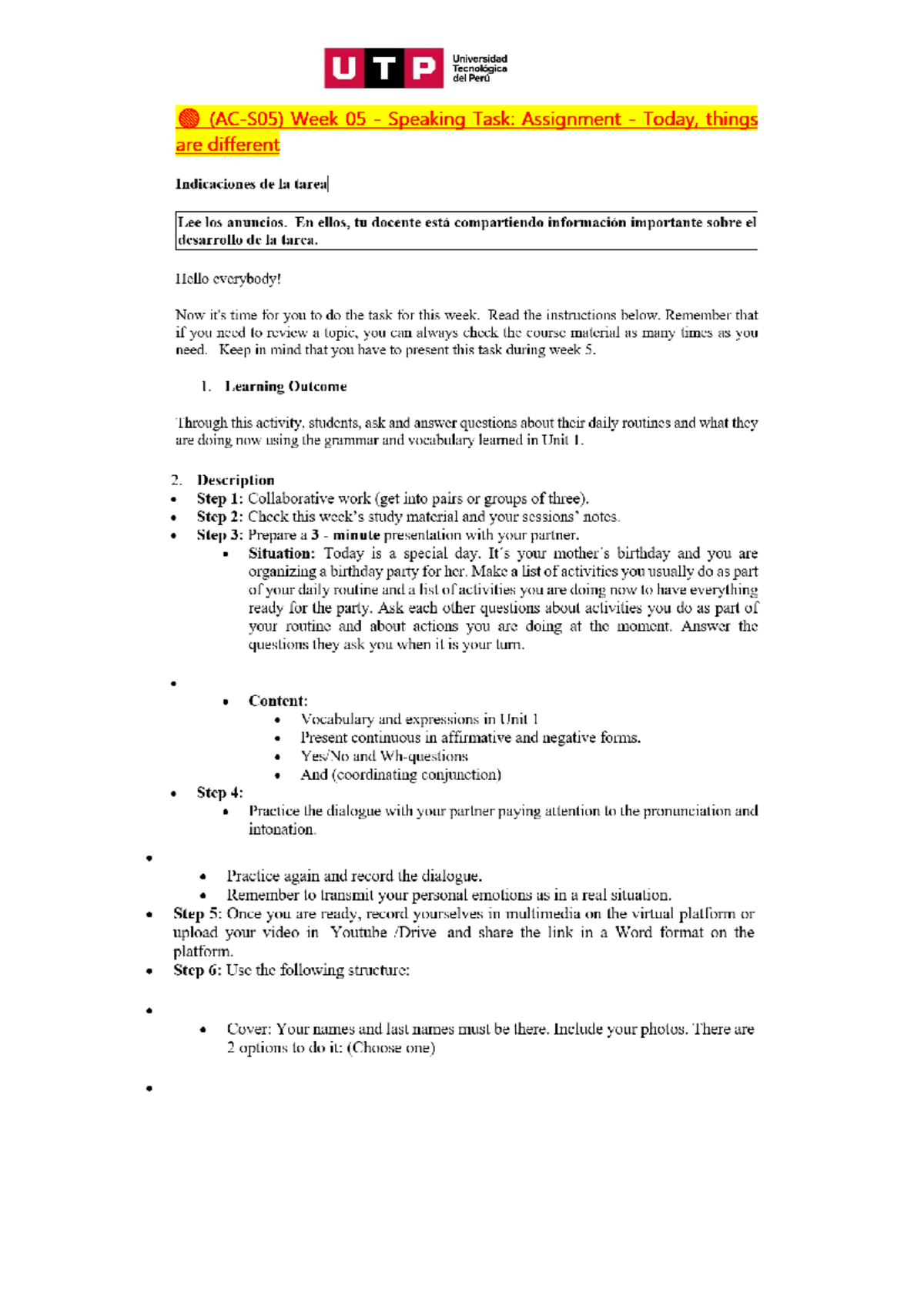 🔴 (AC-S05) Week 05 - Speaking Task Assignment - Ingles II - Studocu