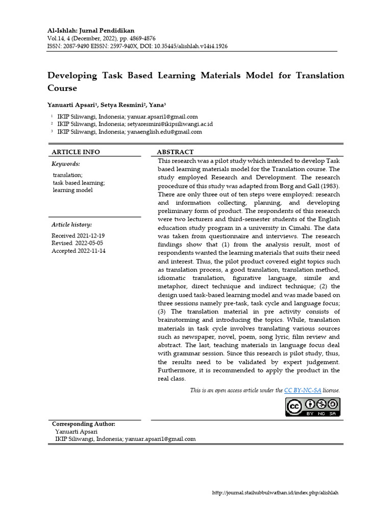 Developing Task Based Learning Materials Model For | PDF | Translations ...