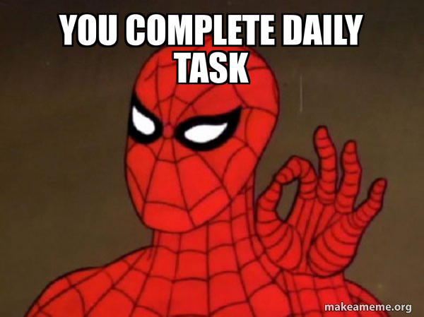 You complete daily task - Spiderman - Care factor Zero Meme Generator