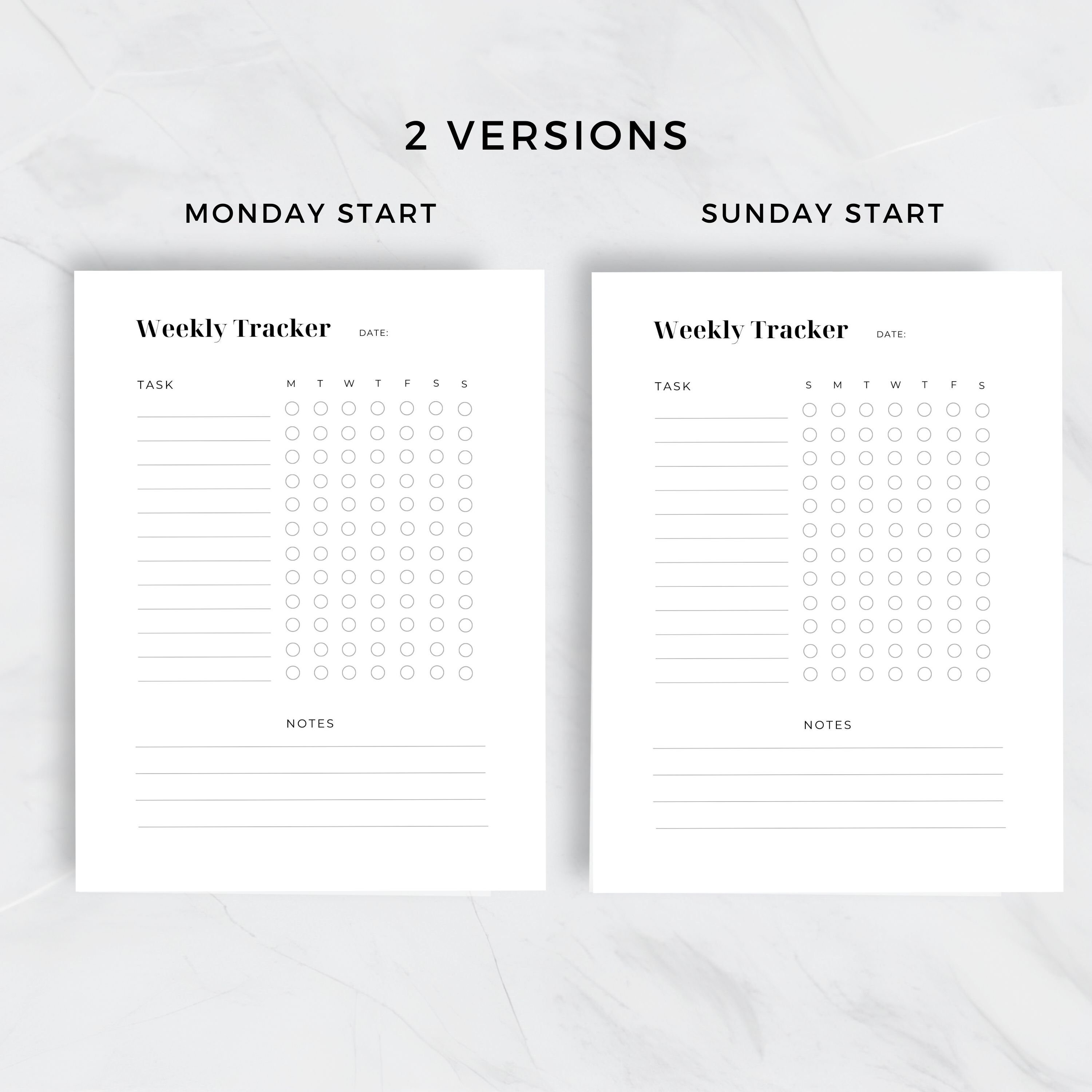 Weekly Task Tracker Template for Journals and Planners, Bujo Daily To ...