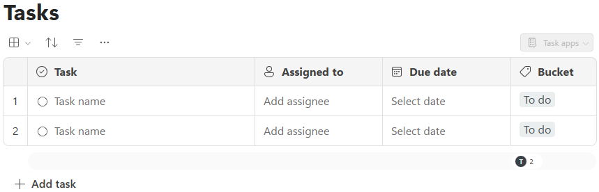 Task list components in Microsoft Loop