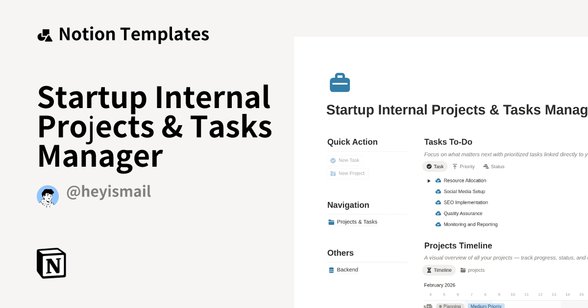 Startup Internal Projects & Tasks Manager Template | Notion Marketplace