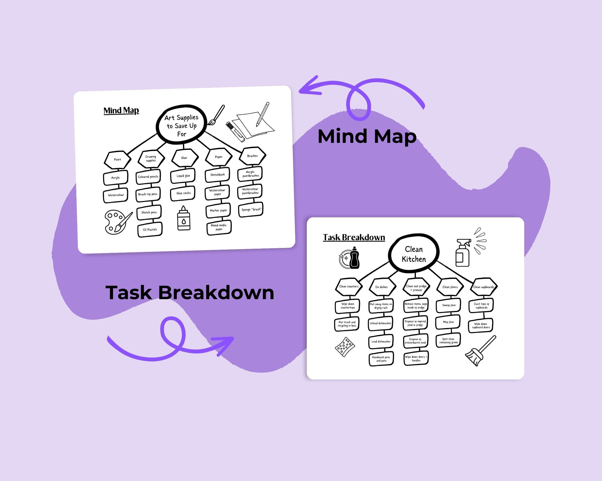 Task Breakdown Plan + Mind Map, Printable Brain Dump Graphic Organizer ...
