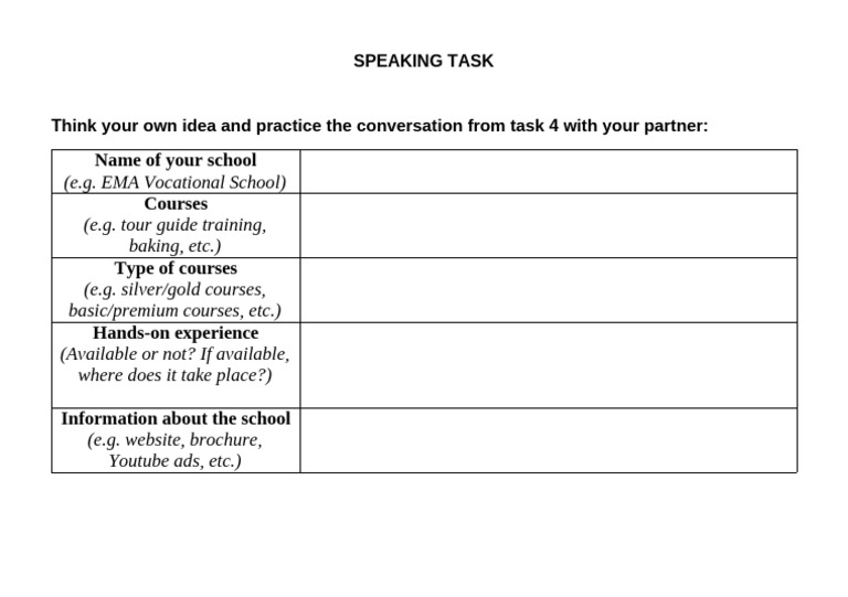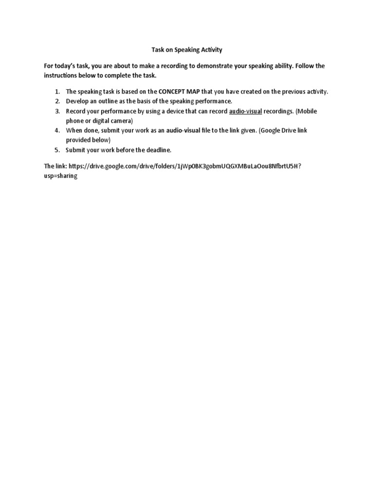 Task On Speaking Activity | PDF