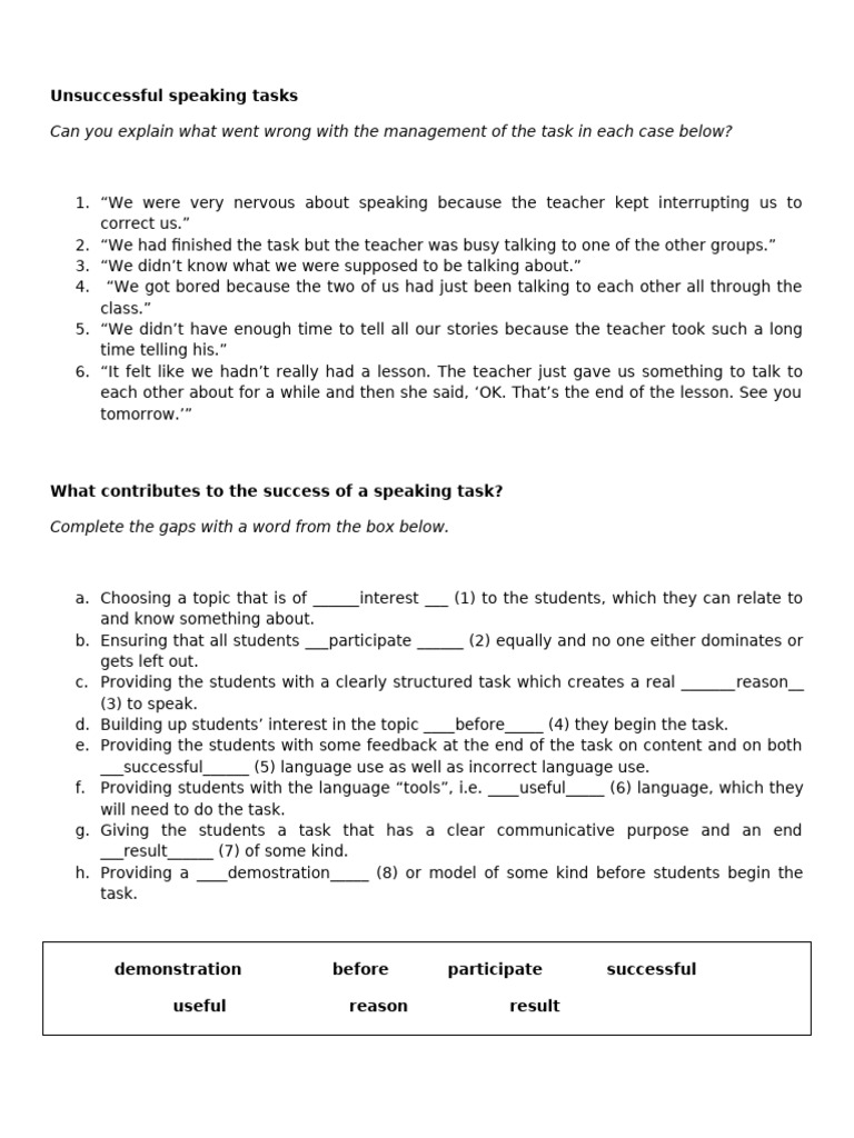 Improving Speaking Task Success | PDF