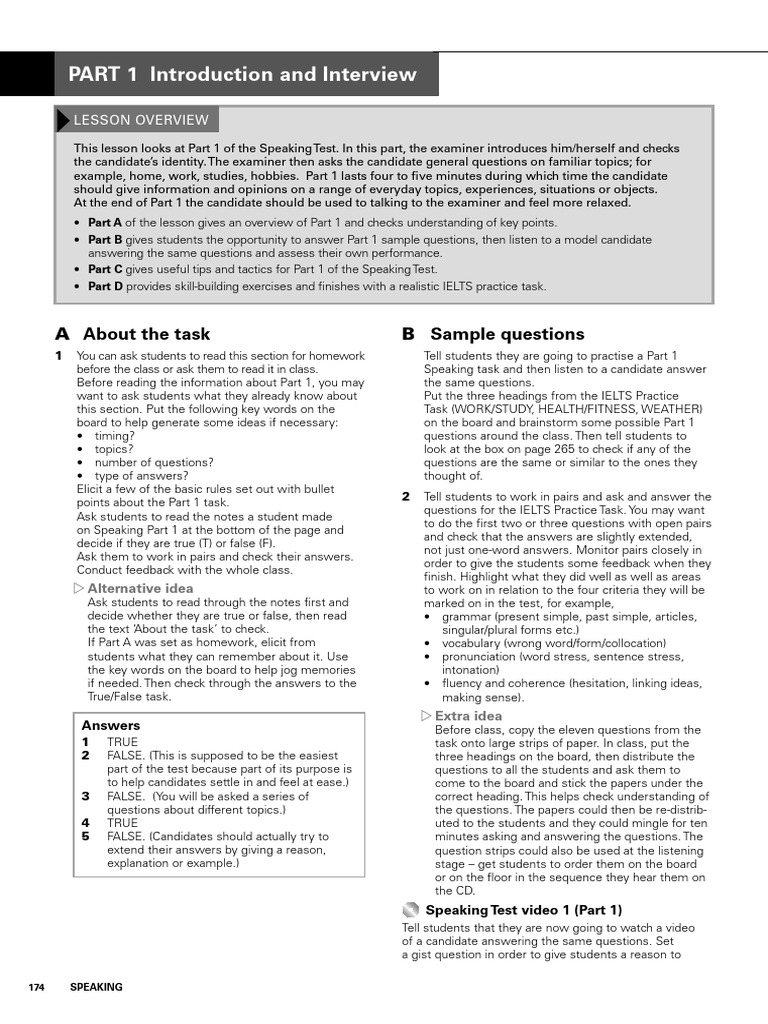 Speaking Sample Task Part 1 Guide | PDF