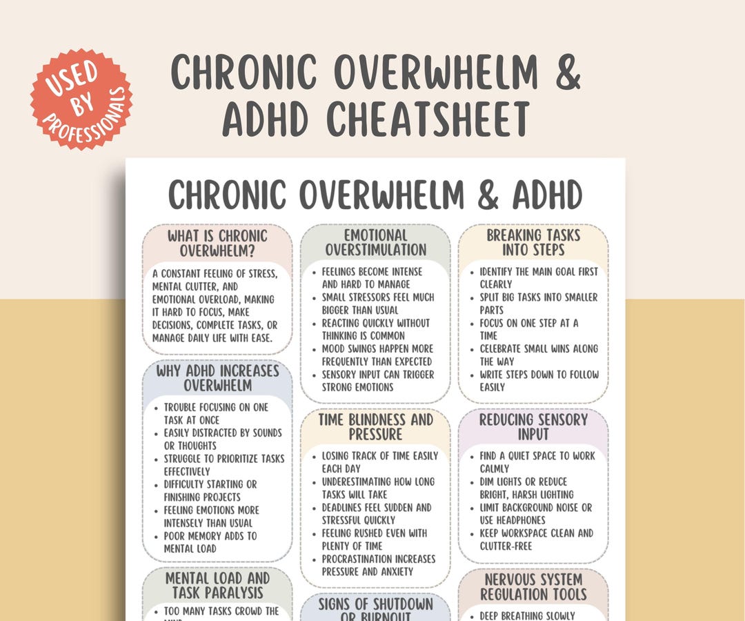 Chronic Overwhelm & ADHD Cheatsheet, Executive Dysfunction Support ...
