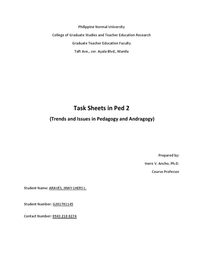 Task Sheets for Pedagogy and Andragogy | PDF | Teachers | Curriculum