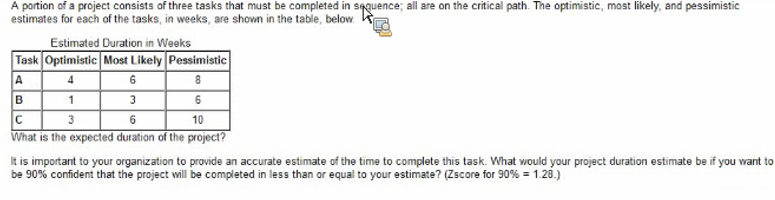 Solved A portion of a project consists of three tasks that | Chegg.com