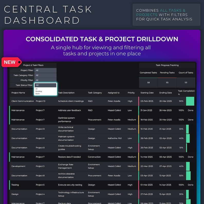 Task Tracking Dashboard Excel at Michelle Mowery blog