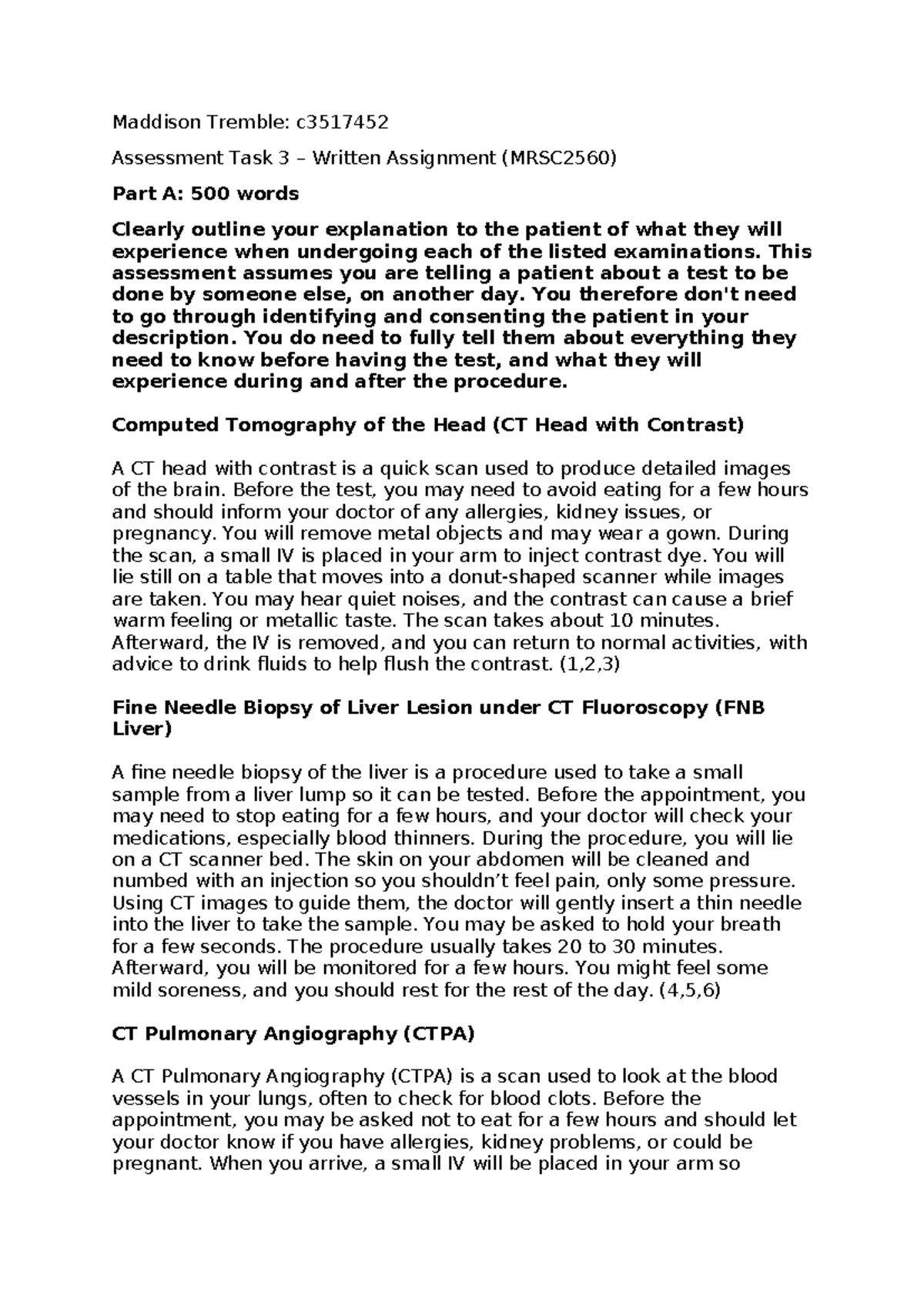 Assessment Task 3: Patient Explanations for Imaging Procedures ...