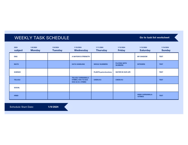 Weekly Task Schedule | Free Weekly Task Schedule Templates