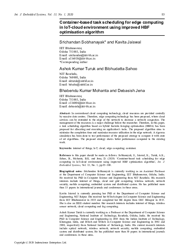 (PDF) Container-based task scheduling for edge computing in IoT-cloud ...