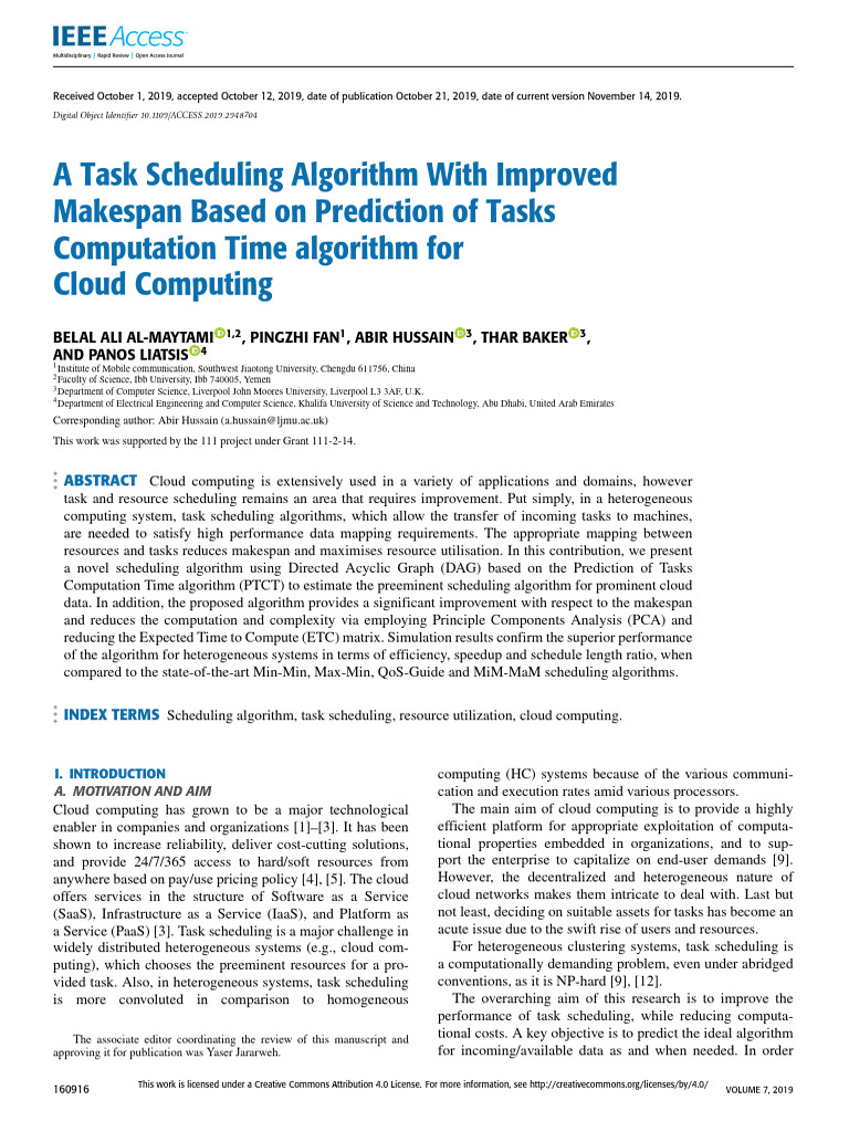 A Task Scheduling Algorithm in Cloud Computing | PDF