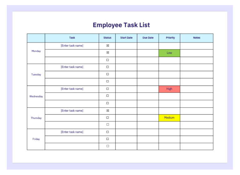 Job Employee Task List Template