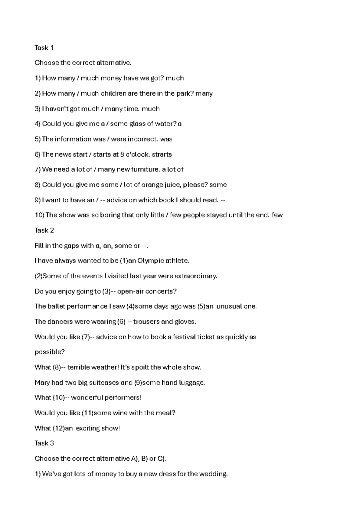 Task 1 - esercizio 1 inglese - Task 1 Choose the correct alternative ...