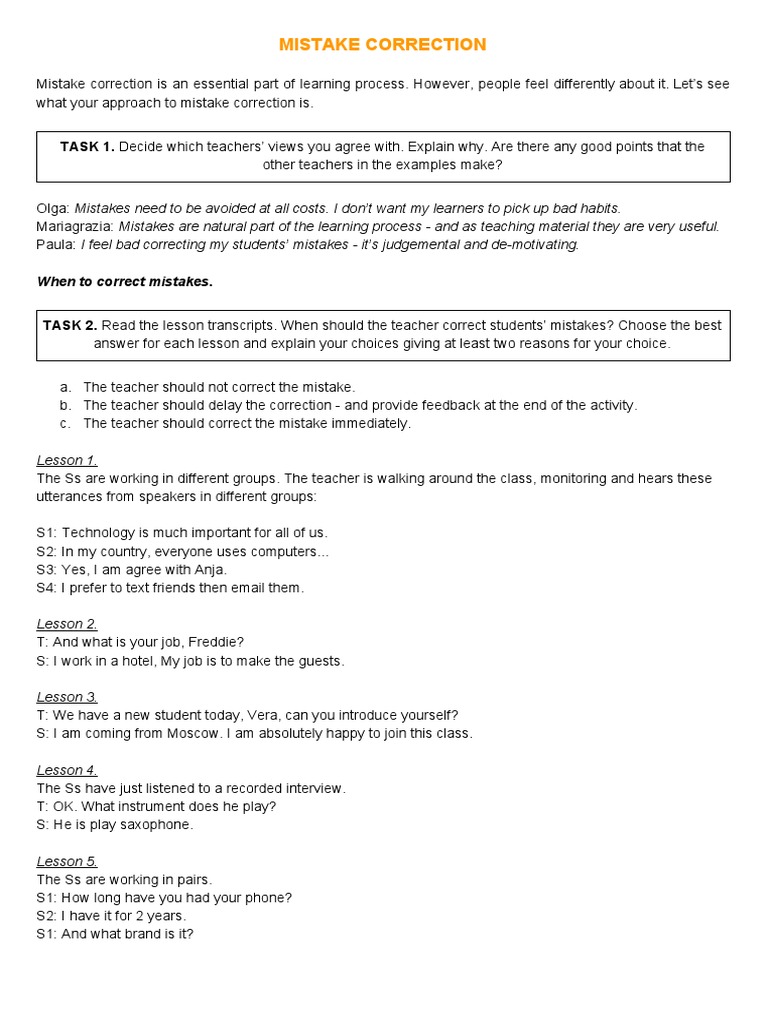Mistake Correction: TASK 1. Decide Which Teachers' Views You Agree With ...