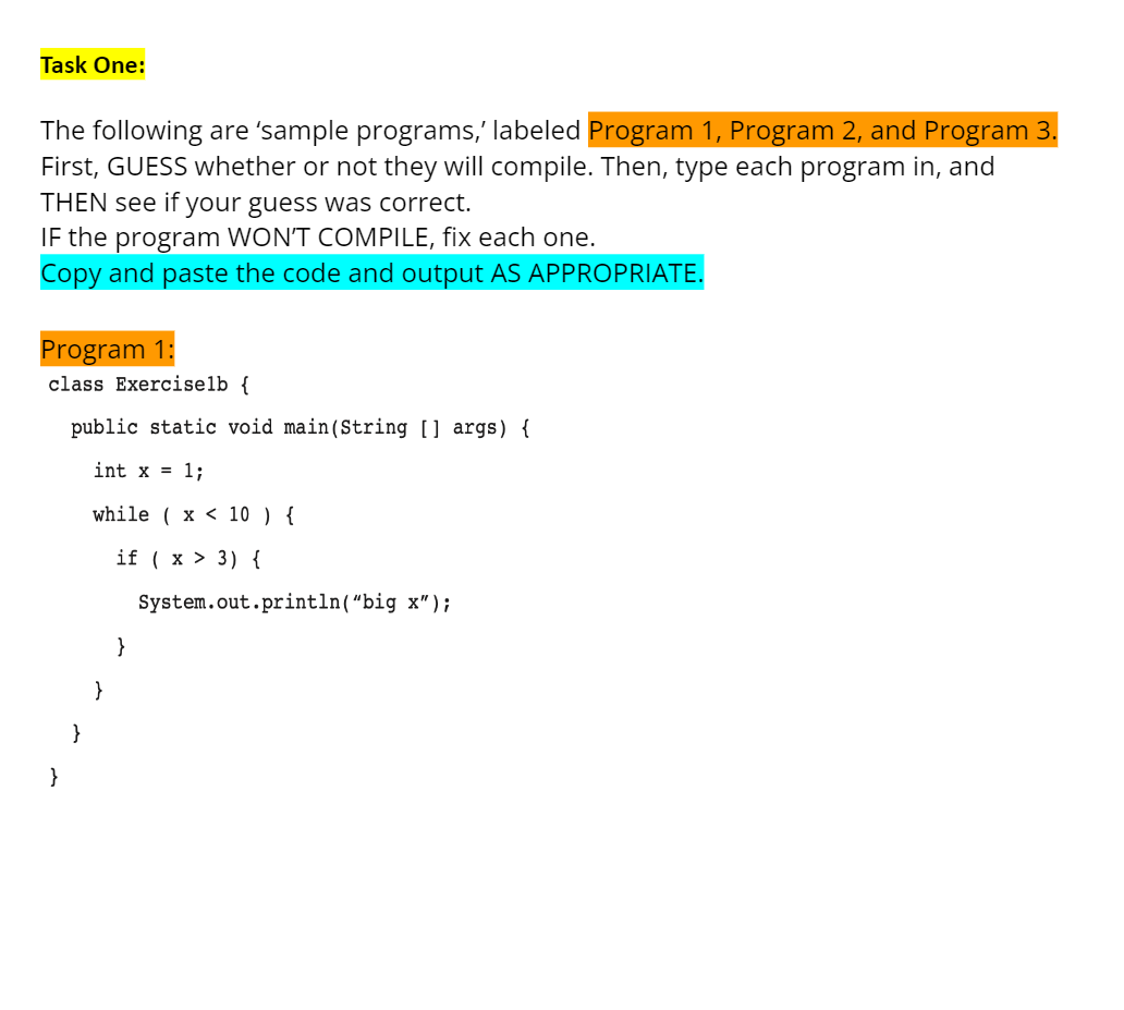 Solved Please do Task One (including Programs 1, 2 and 3), | Chegg.com