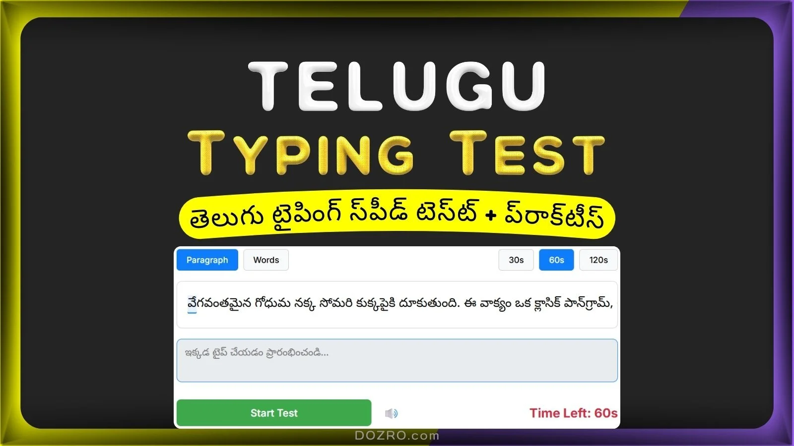 Telugu Typing Test – తెలుగు టైపింగ్ స్పీడ్ టెస్ట్ | 30s, 60s, 120s ...