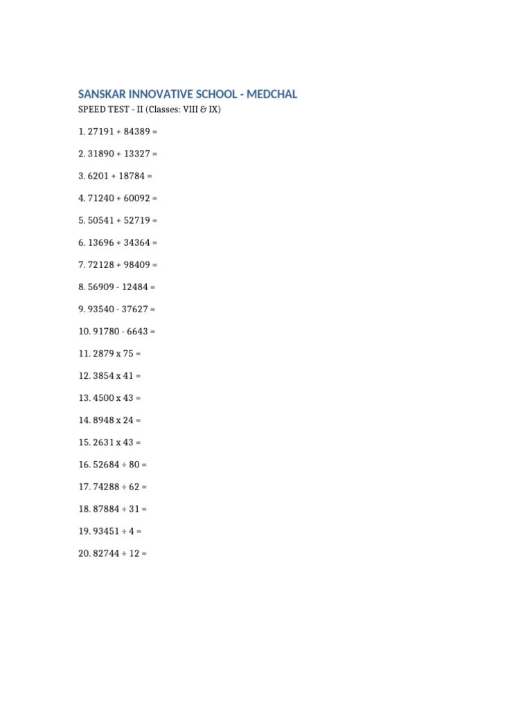 100 Basic Facts Speed Test Grade 4-6 by Trixibelle Swan | TPT